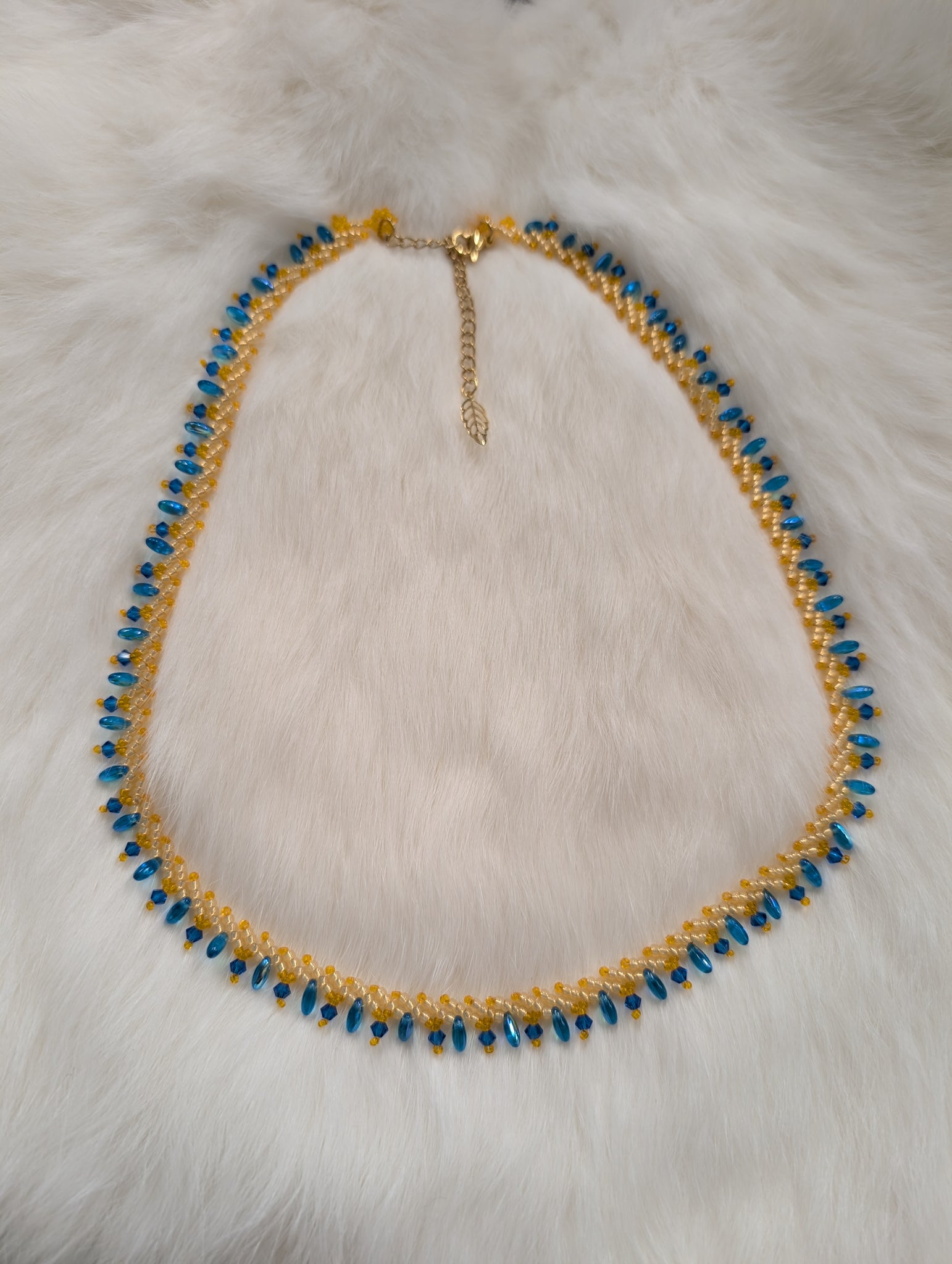 This dainty necklace is made with the St-Petersburg stitch. It is very light and comfortable. Made out of glass beads and a stainless steel clasp making it hypoallergenic. Perfect way to add a pop of colour to any outfit.