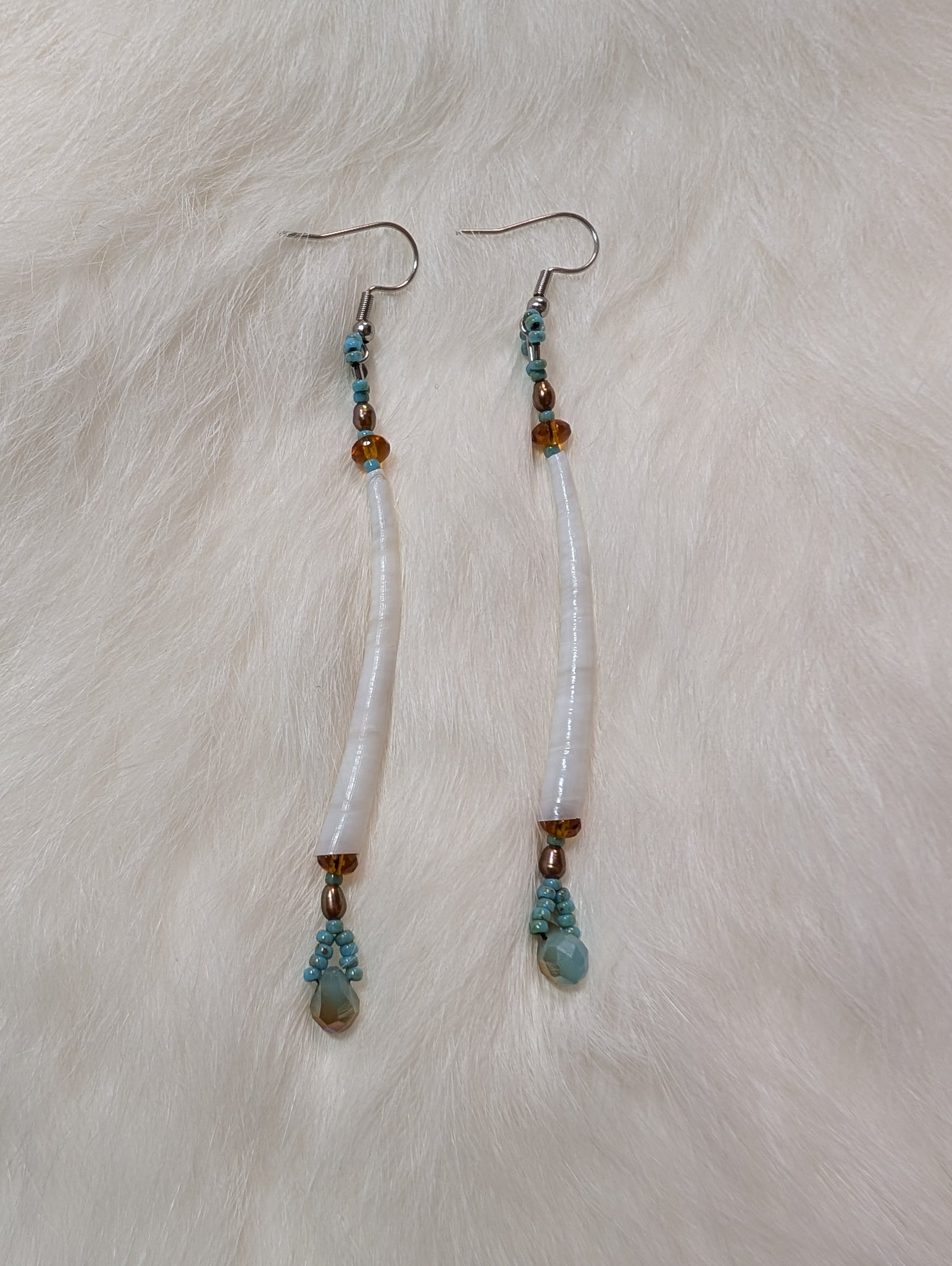Beautiful natural dentallium shells mixed with glass and crystal.